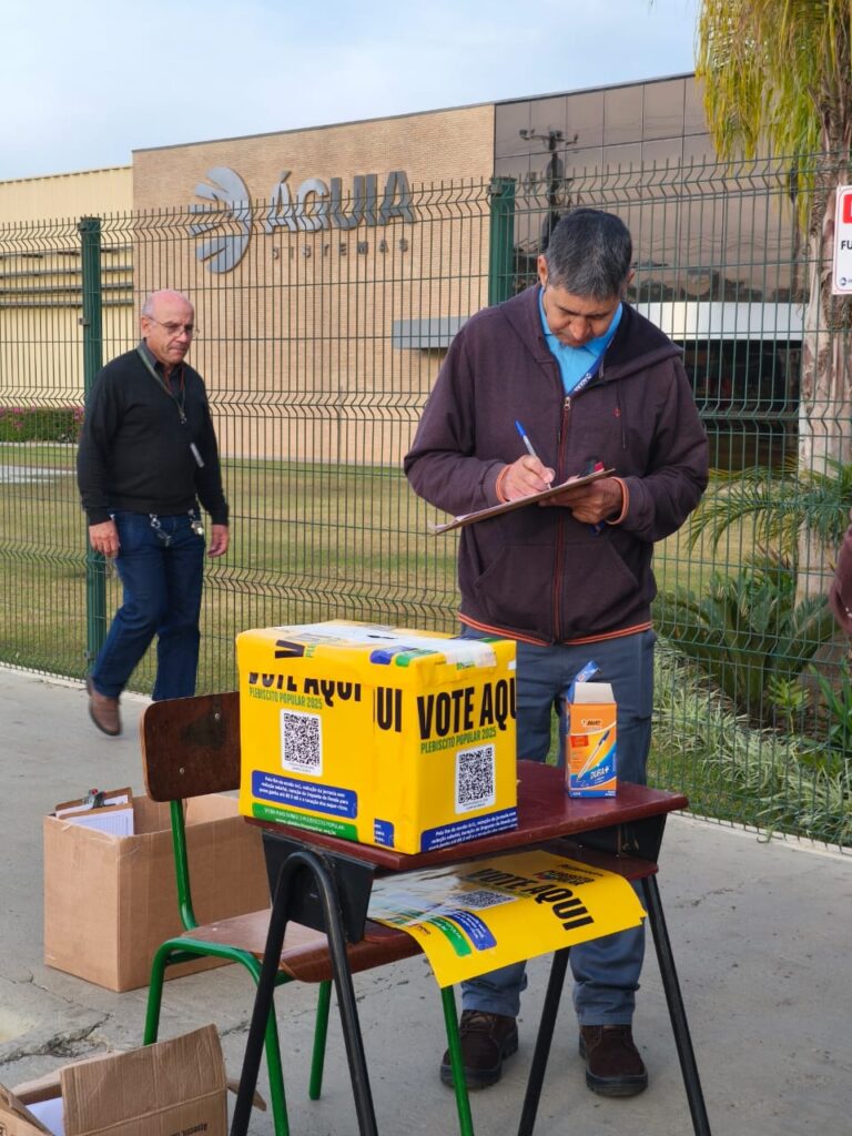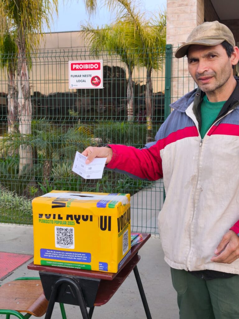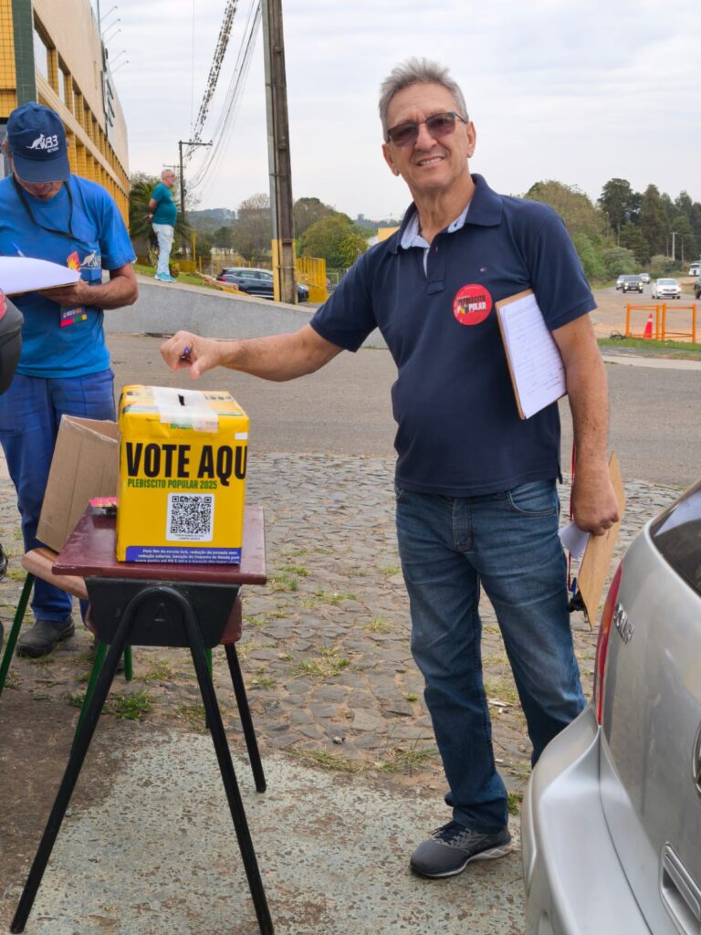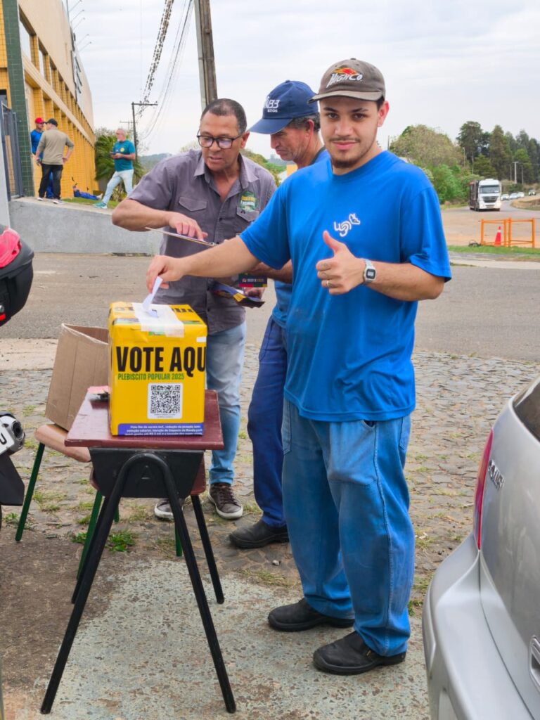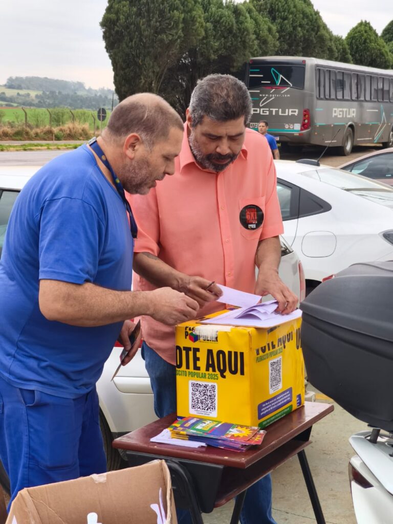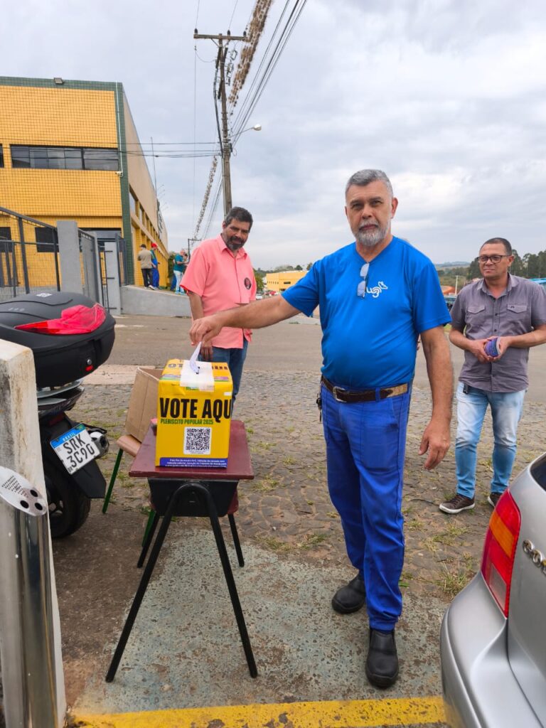 O Sindicato dos Metalúrgicos de Ponta Grossa e Região promoveu nesta semana uma série de ações diretamente nas portas de fábricas para divulgar o Plebiscito Popular 2025 e coletar votos da categoria. A iniciativa integra a reta final da mobilização nacional, que consulta a população sobre três temas fundamentais para os trabalhadores brasileiros: